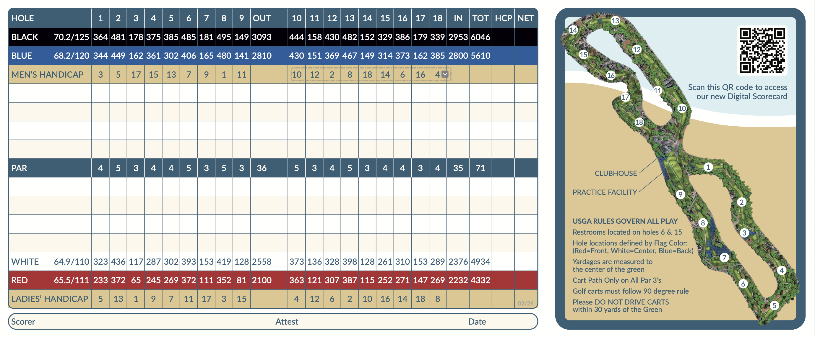 New Scorecard with the ORIGINAL Rotation as of January of 2026 with updated CGA ratings and yardages.